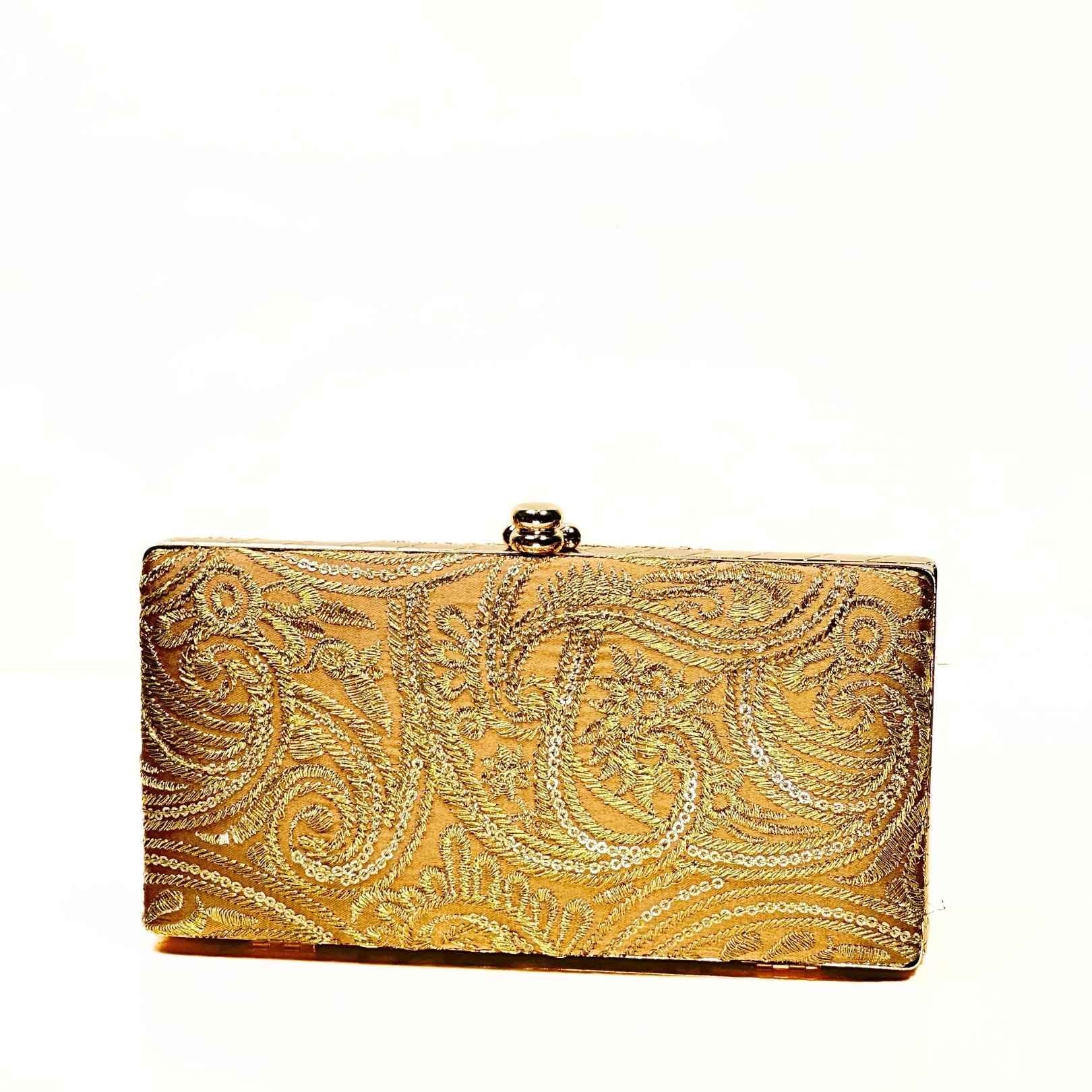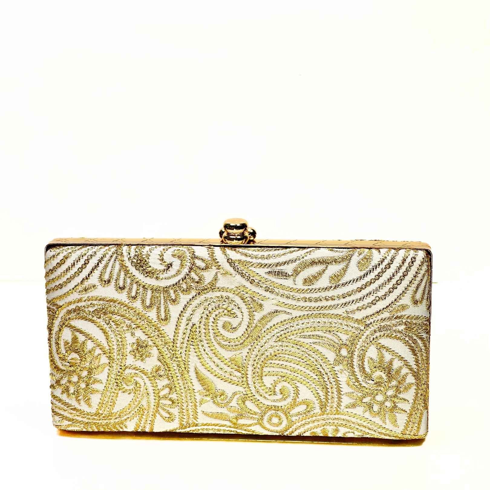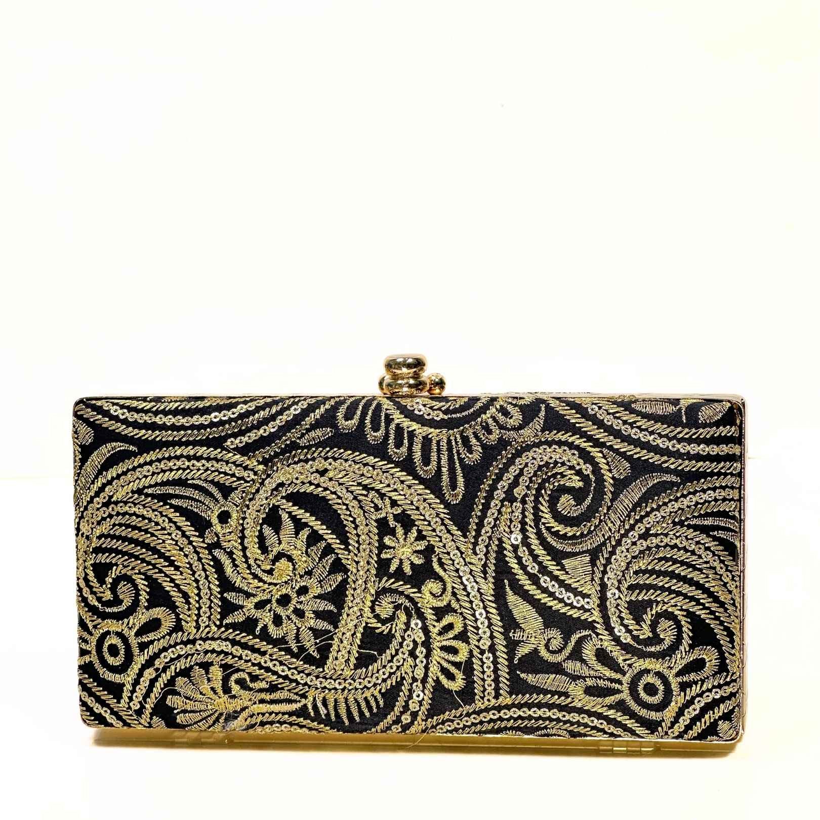 - حقيبة يد معدنية رائعة بتصميمات مطرزة معقدة على كلا الجانبين