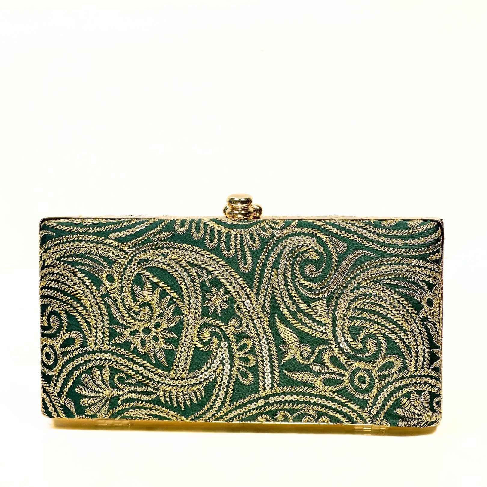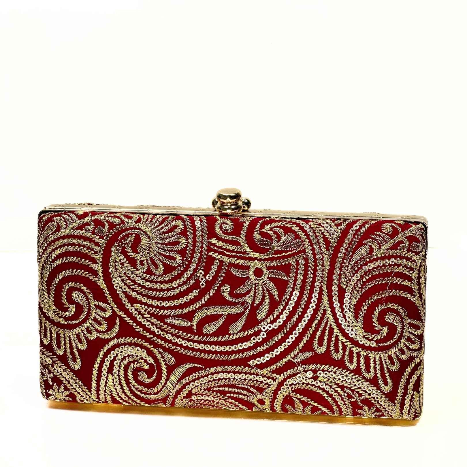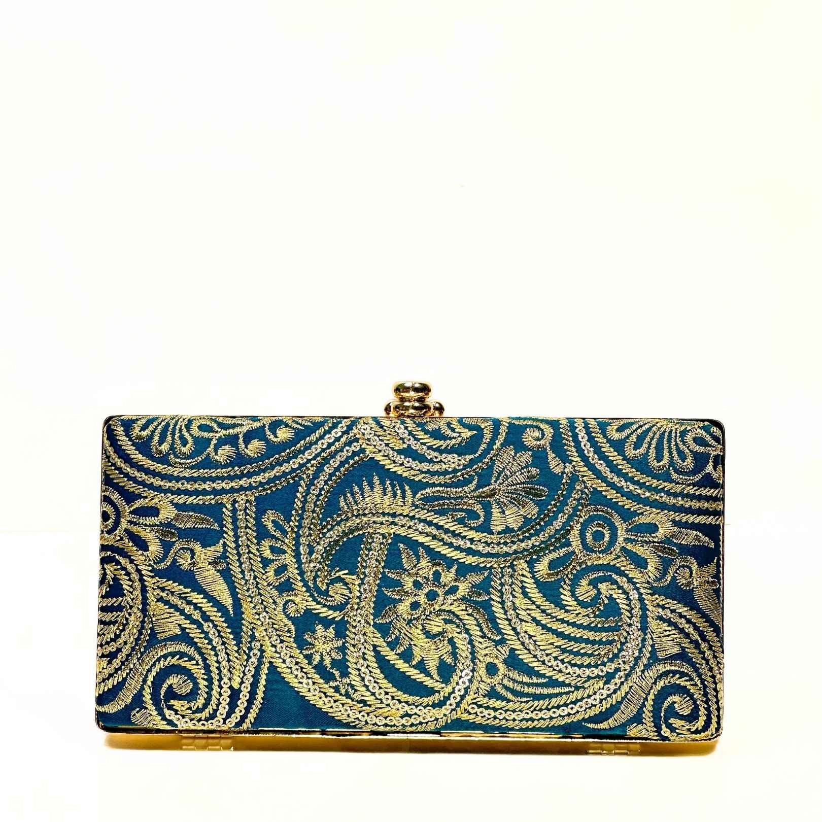 - حقيبة يد معدنية رائعة بتصميمات مطرزة معقدة على كلا الجانبين