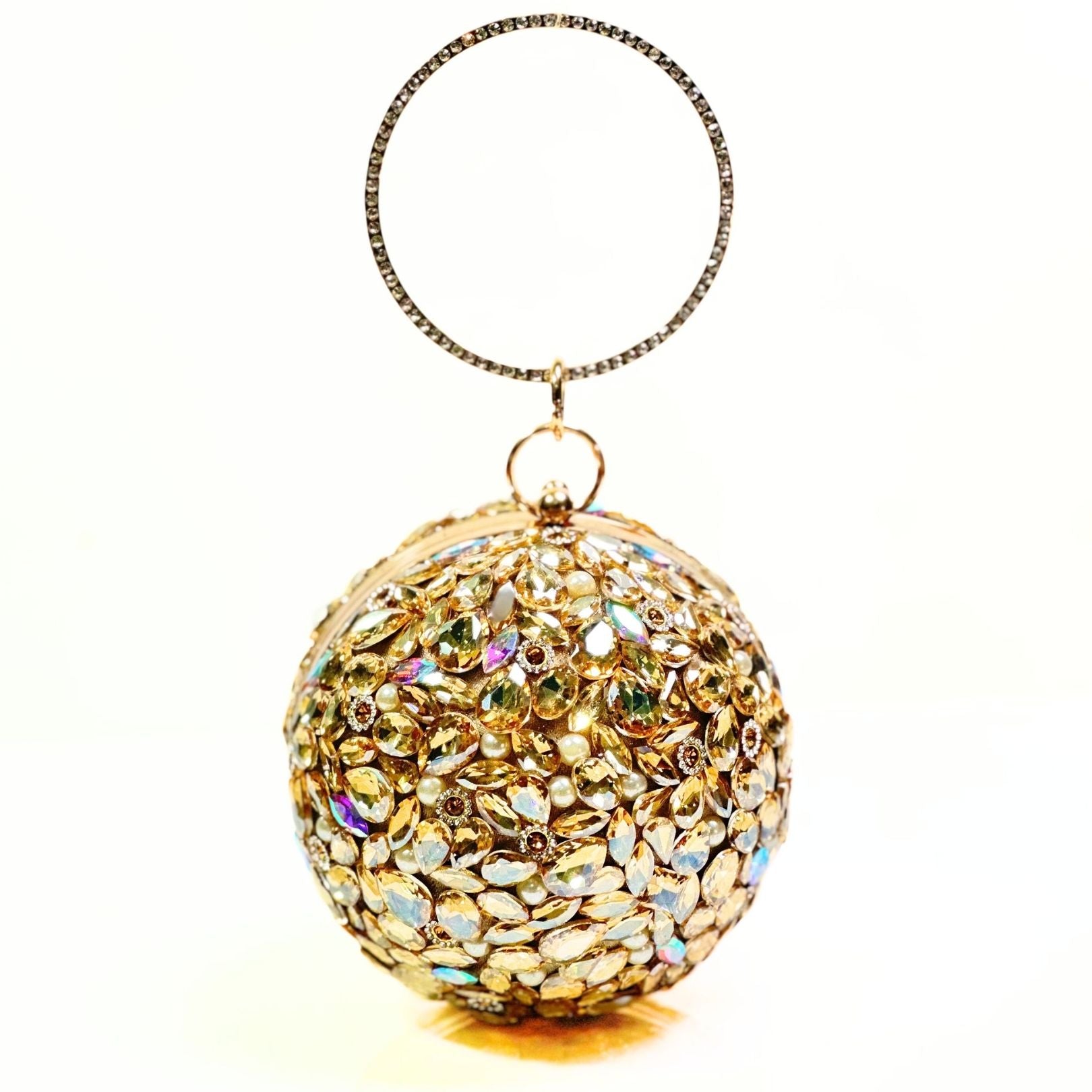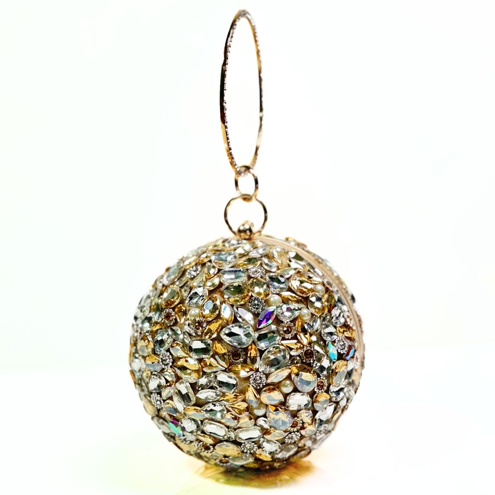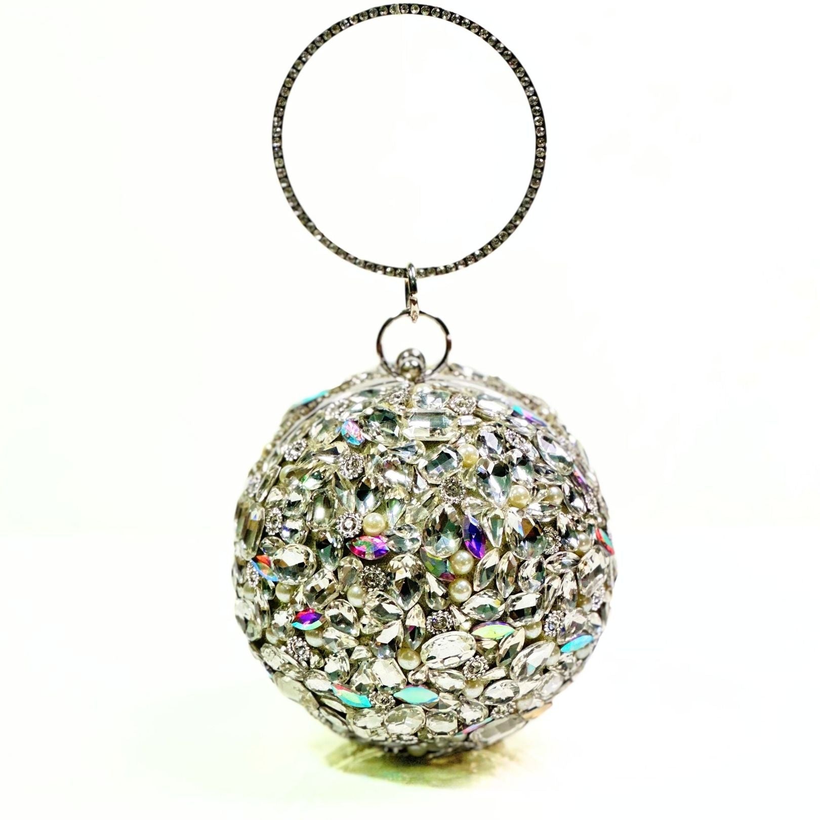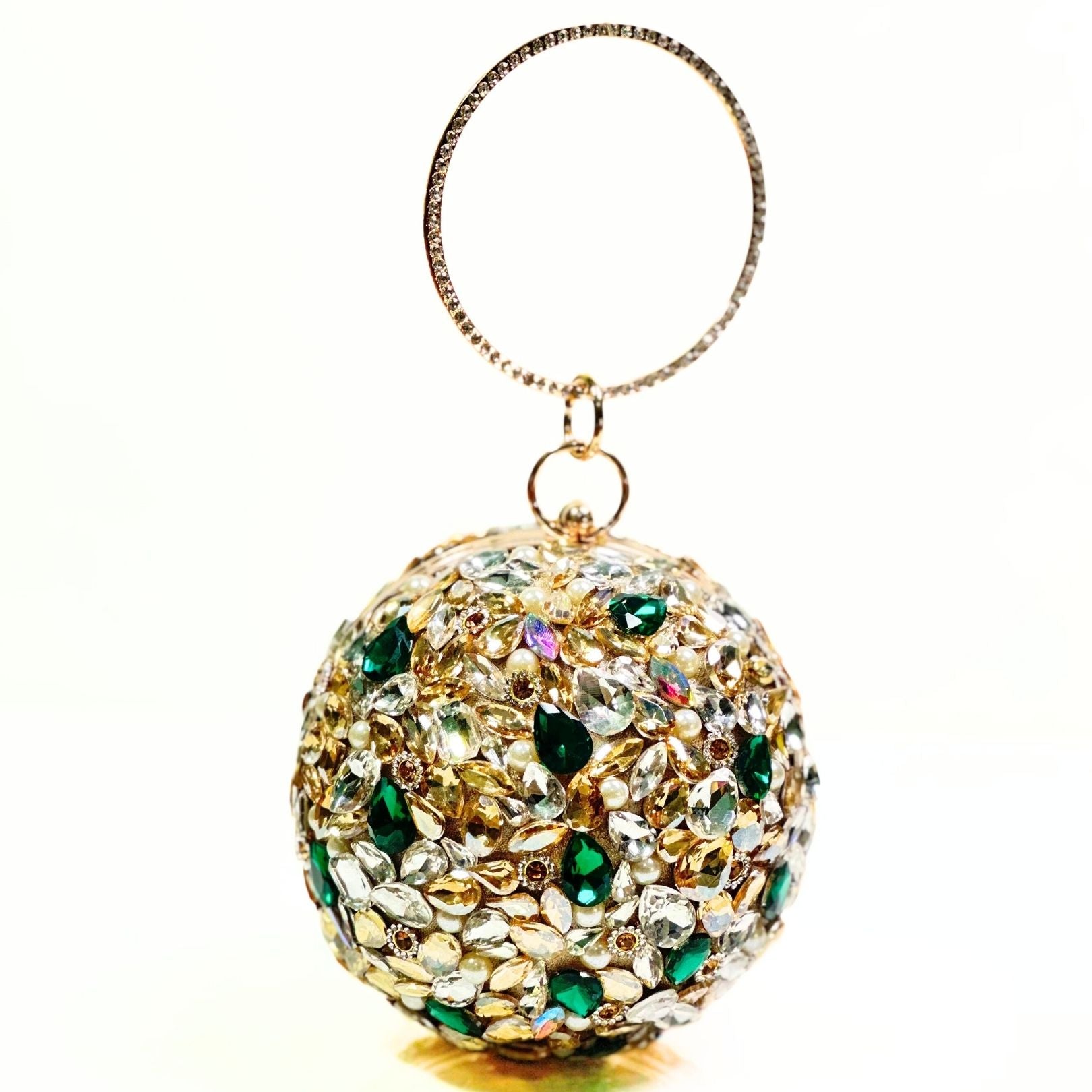 Make every occasion unforgettable with the Imperial Jewel Ball Clutch, a stunning accessory designed for true glamour lovers. This spherical clutch is fully adorned with sparkling crystals and jewel-cut stones that shimmer beautifully with every movement. Its intricate 360° embellished design ensures you stand out at weddings, parties, and formal events.