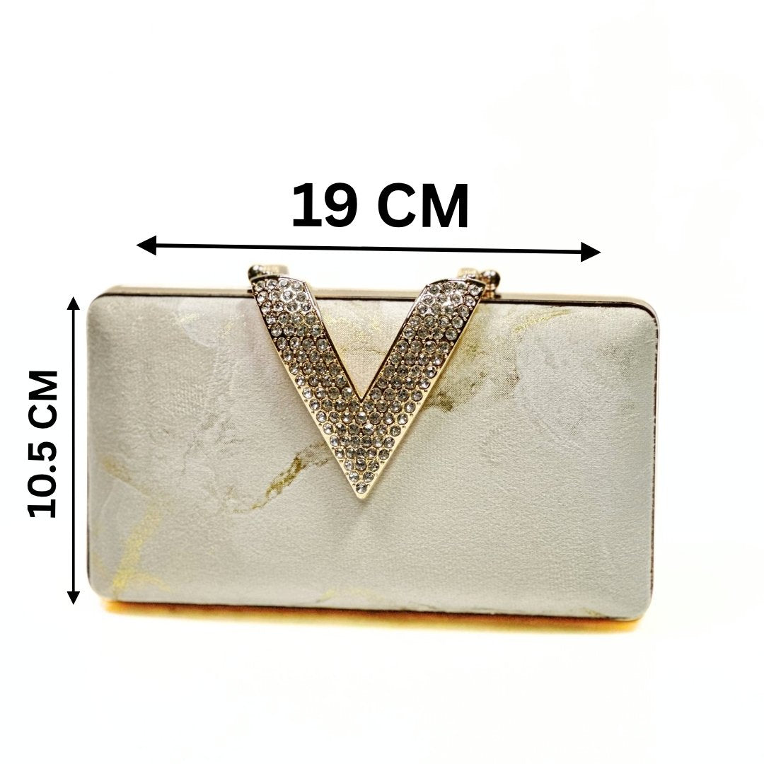 Featuring a sleek metal handle and a detachable chain, this versatile clutch can be carried by hand or worn over the shoulder. Ideal for special occasions, the Marble Shine Luxe Clutch combines high-fashion style with practical functionality, making it a must-have accessory for any chic wardrobe.