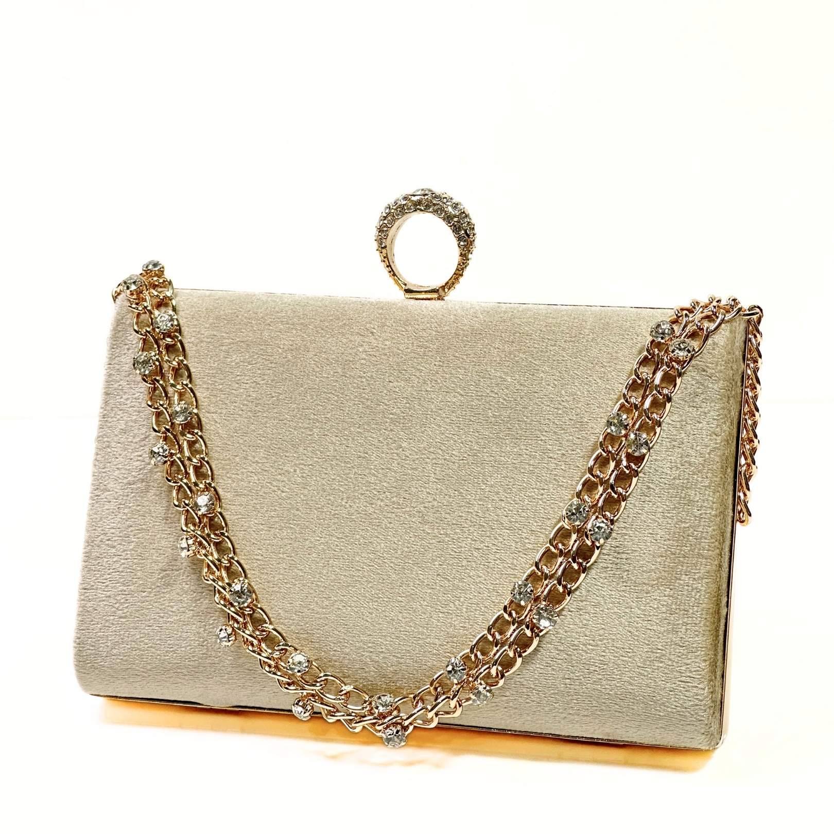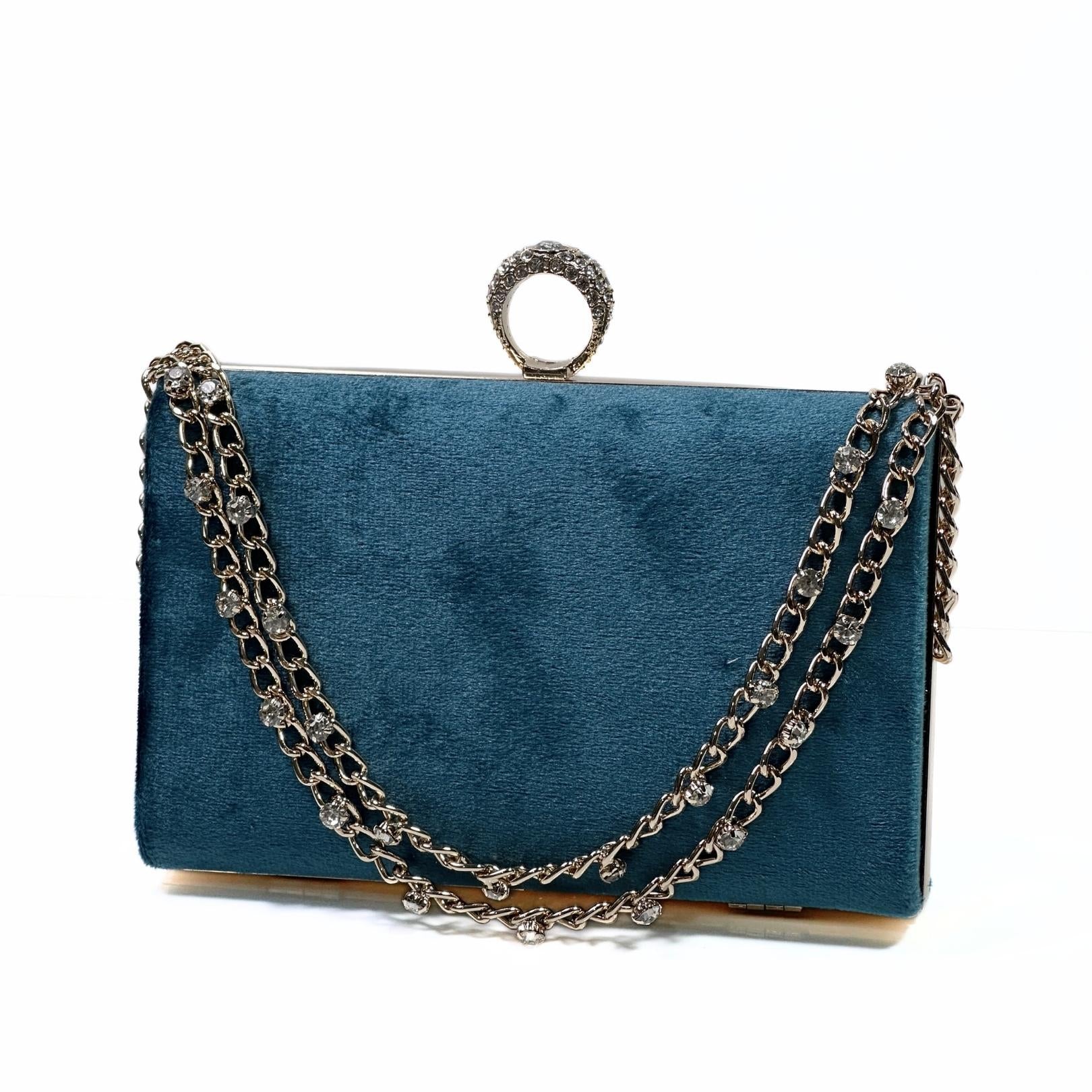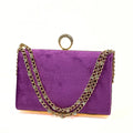 Velvet clutch bag for women with ring handle