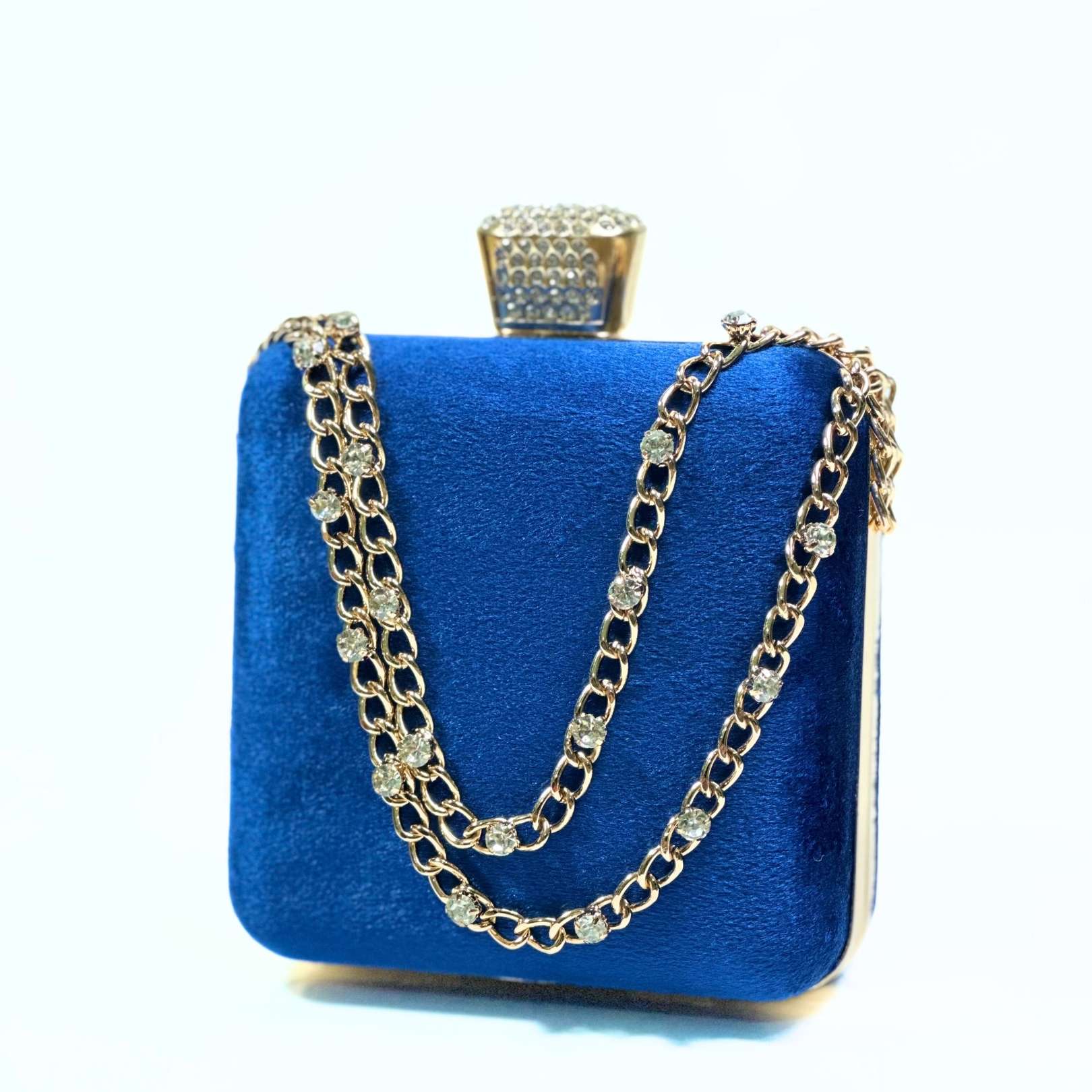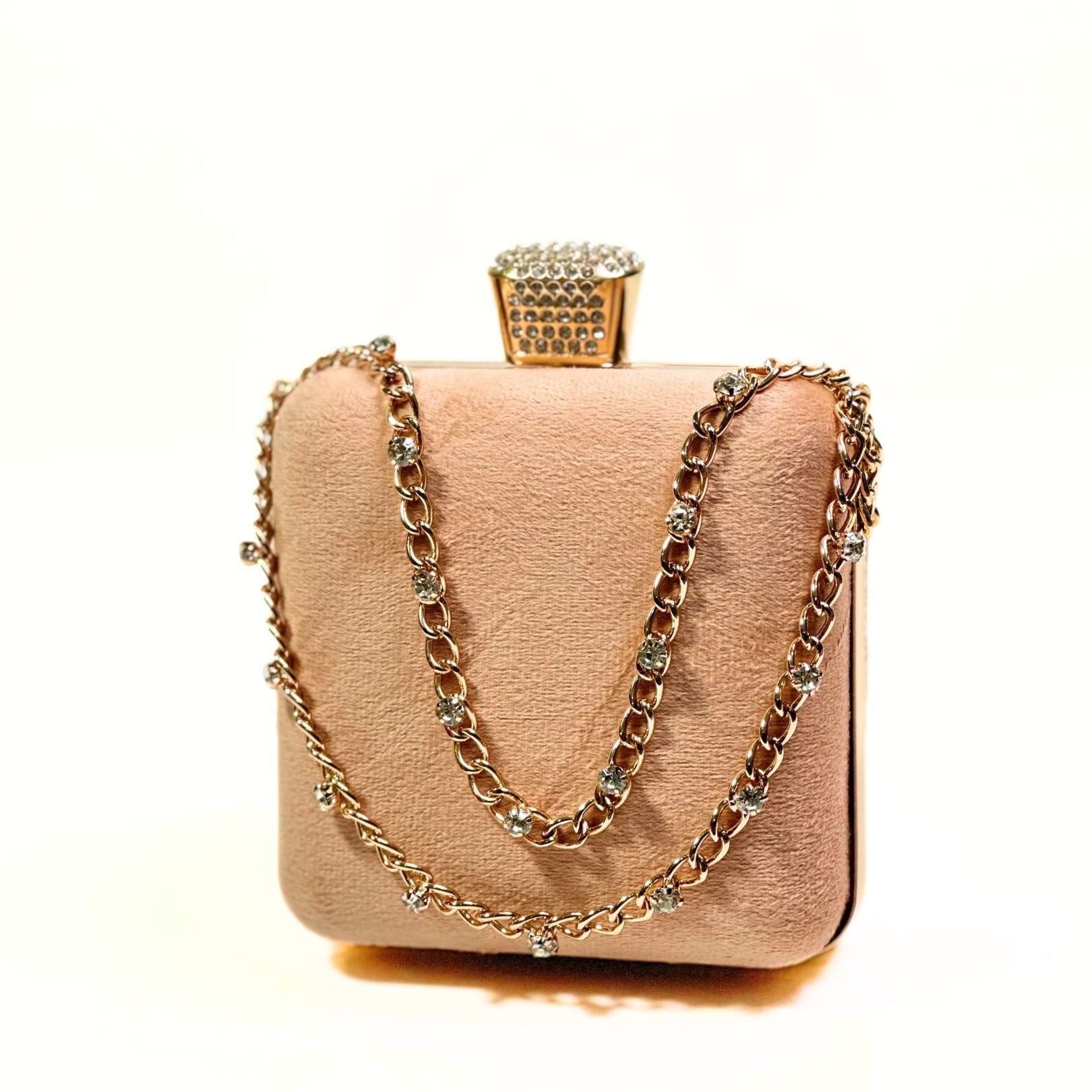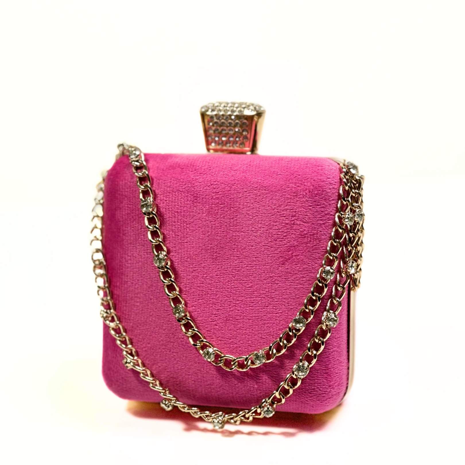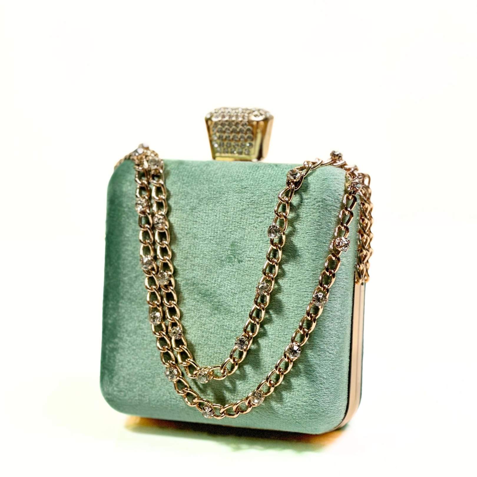 Add a dash of elegance to your look with the Stone Chain Velvet Clutch, the perfect blend of style and functionality.