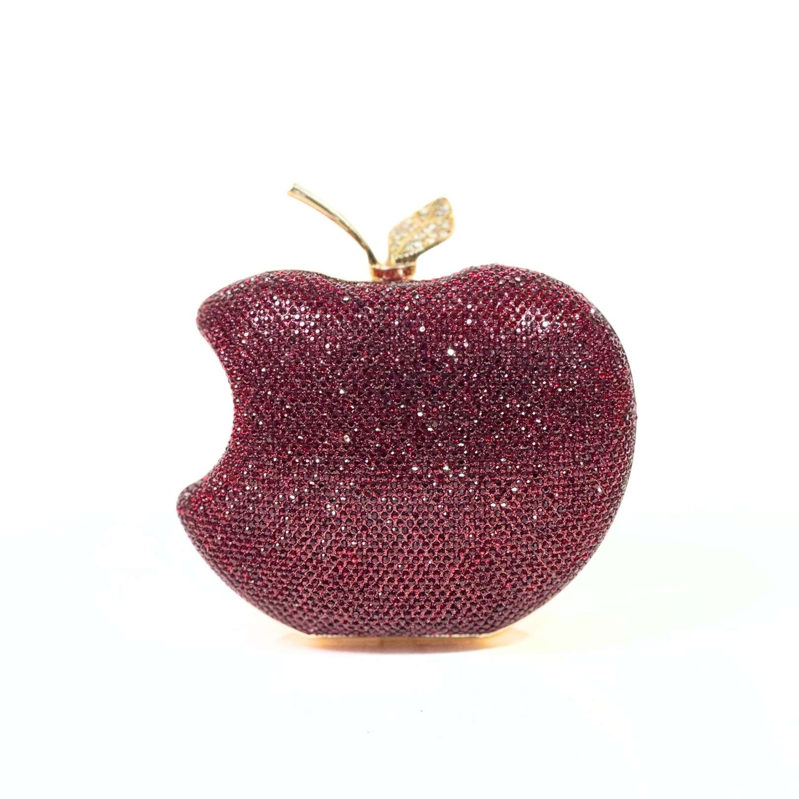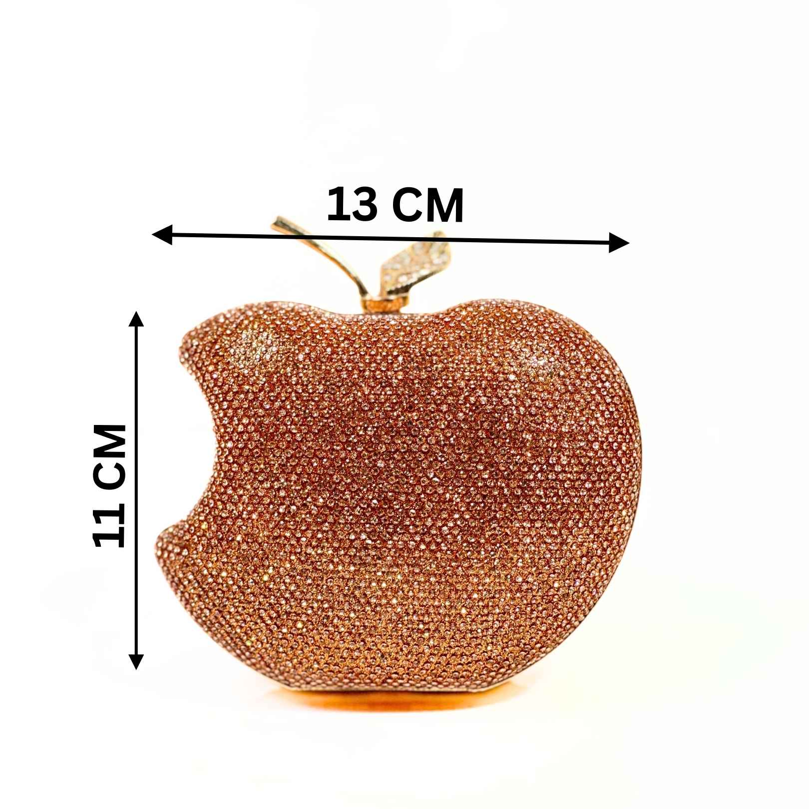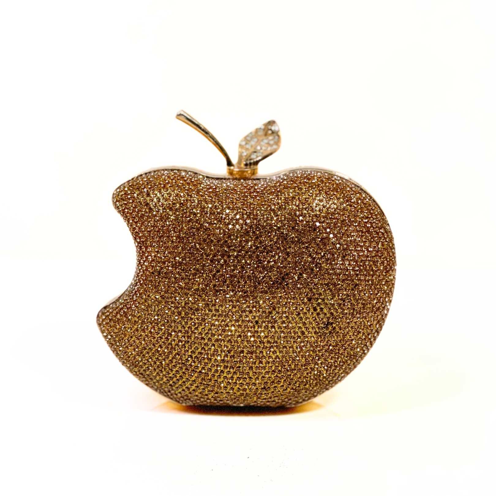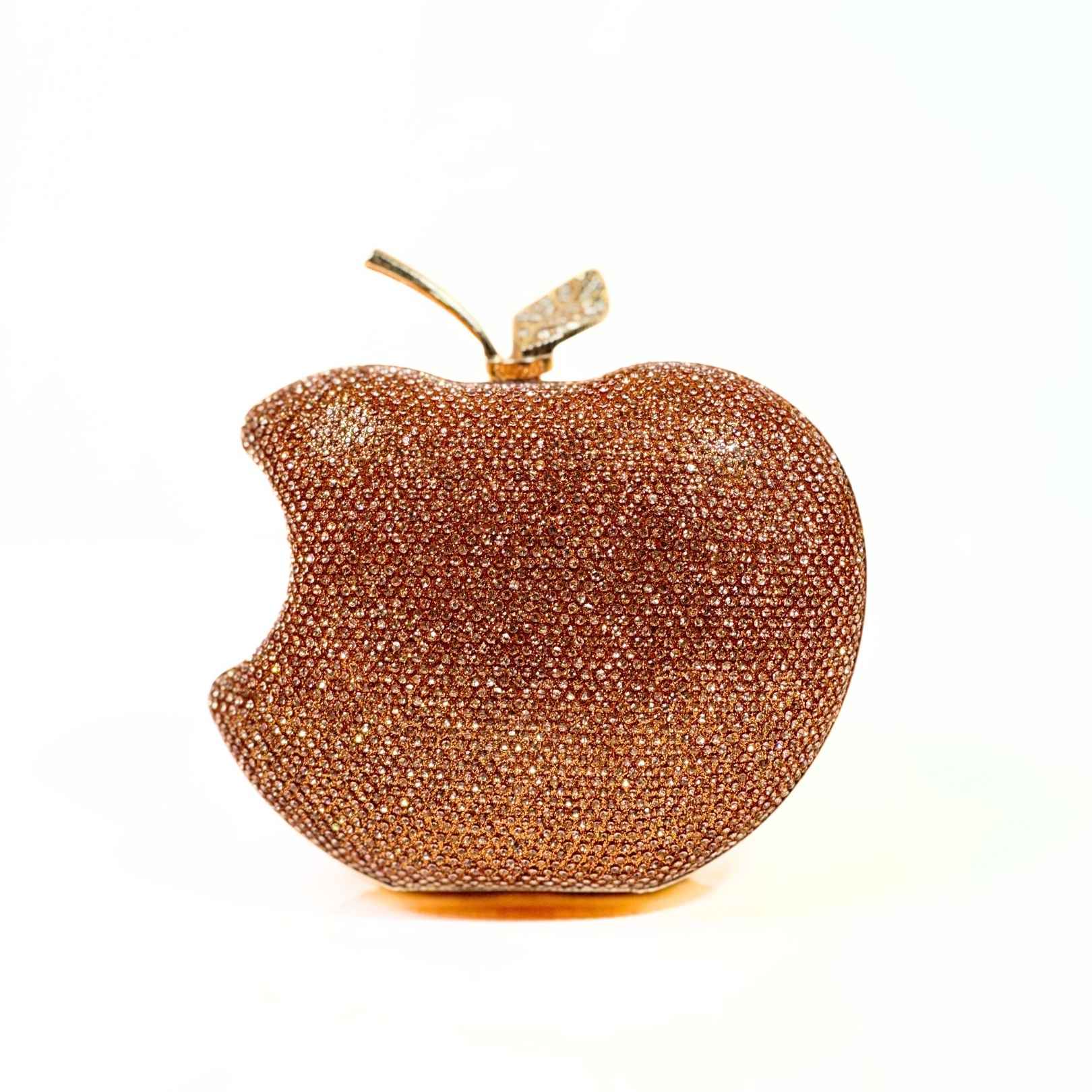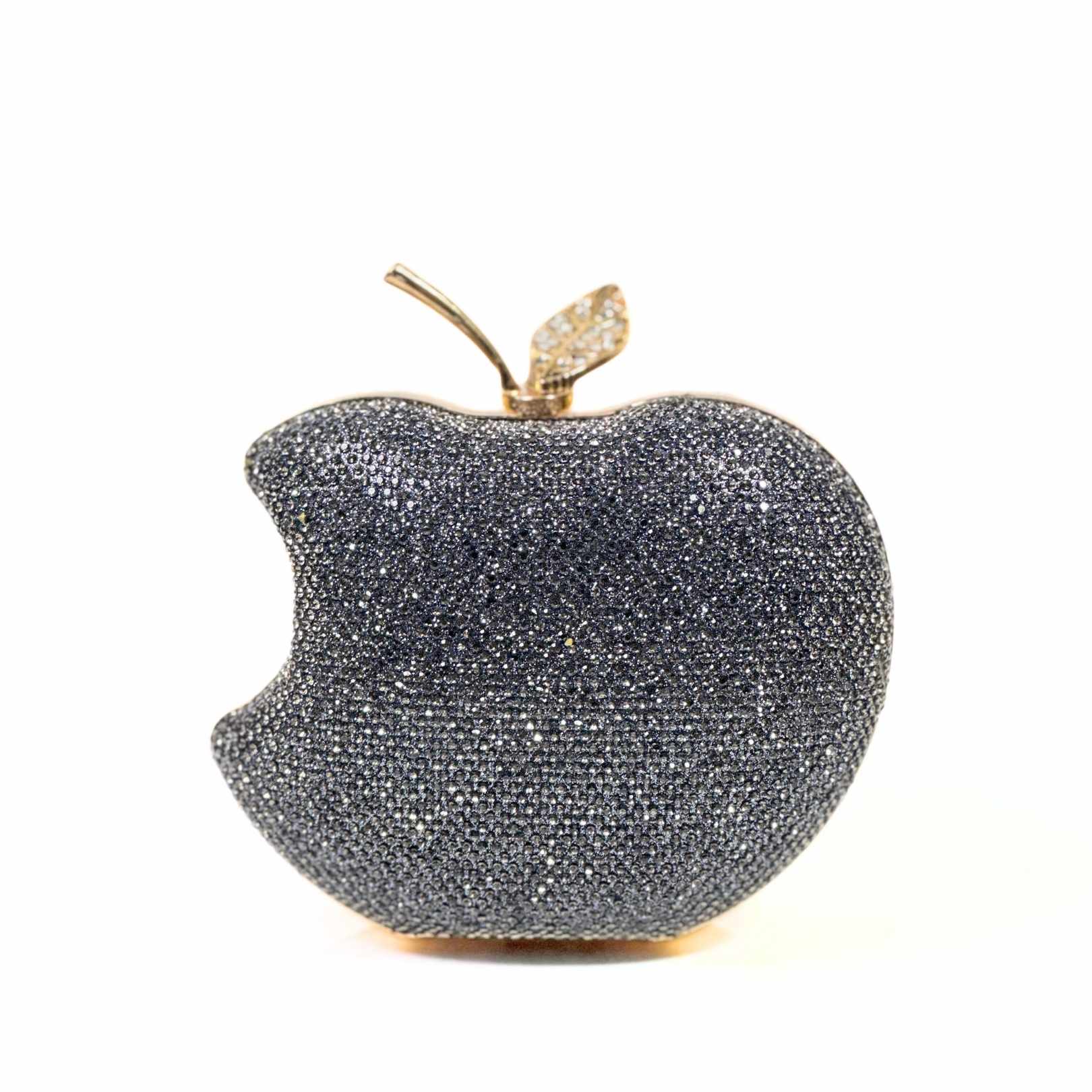 Playful yet exquisitely refined, the Apple Blossom Stone Clutch is a true statement of charm and elegance. Designed in a unique apple silhouette, this clutch is fully encrusted with shimmering stones that create a radiant, jewel-like finish from every angle.