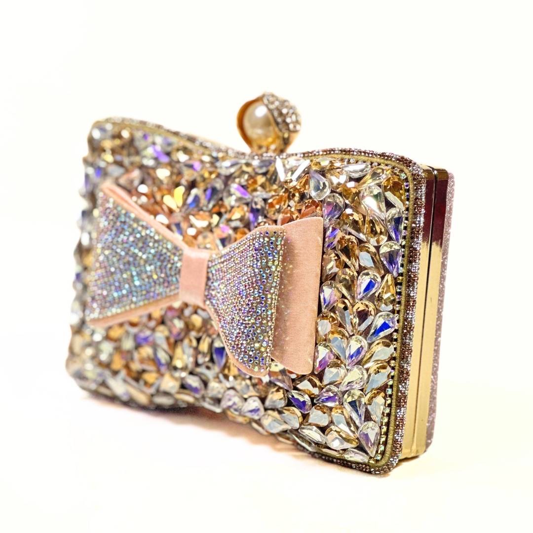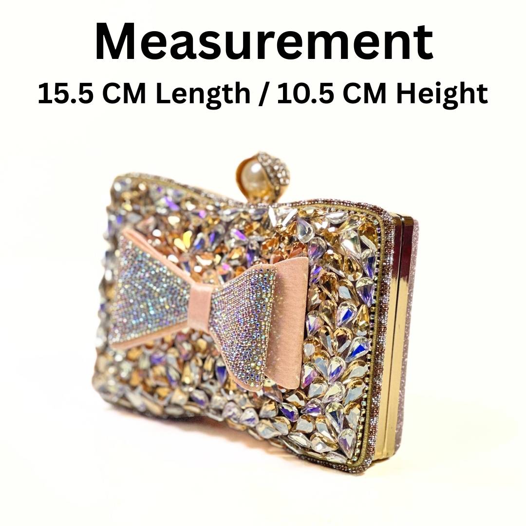 A statement piece designed to dazzle, featuring intricate stone handwork with a sparkling bow centerpiece. Its glamorous look makes it perfect for weddings, parties, and special occasions.