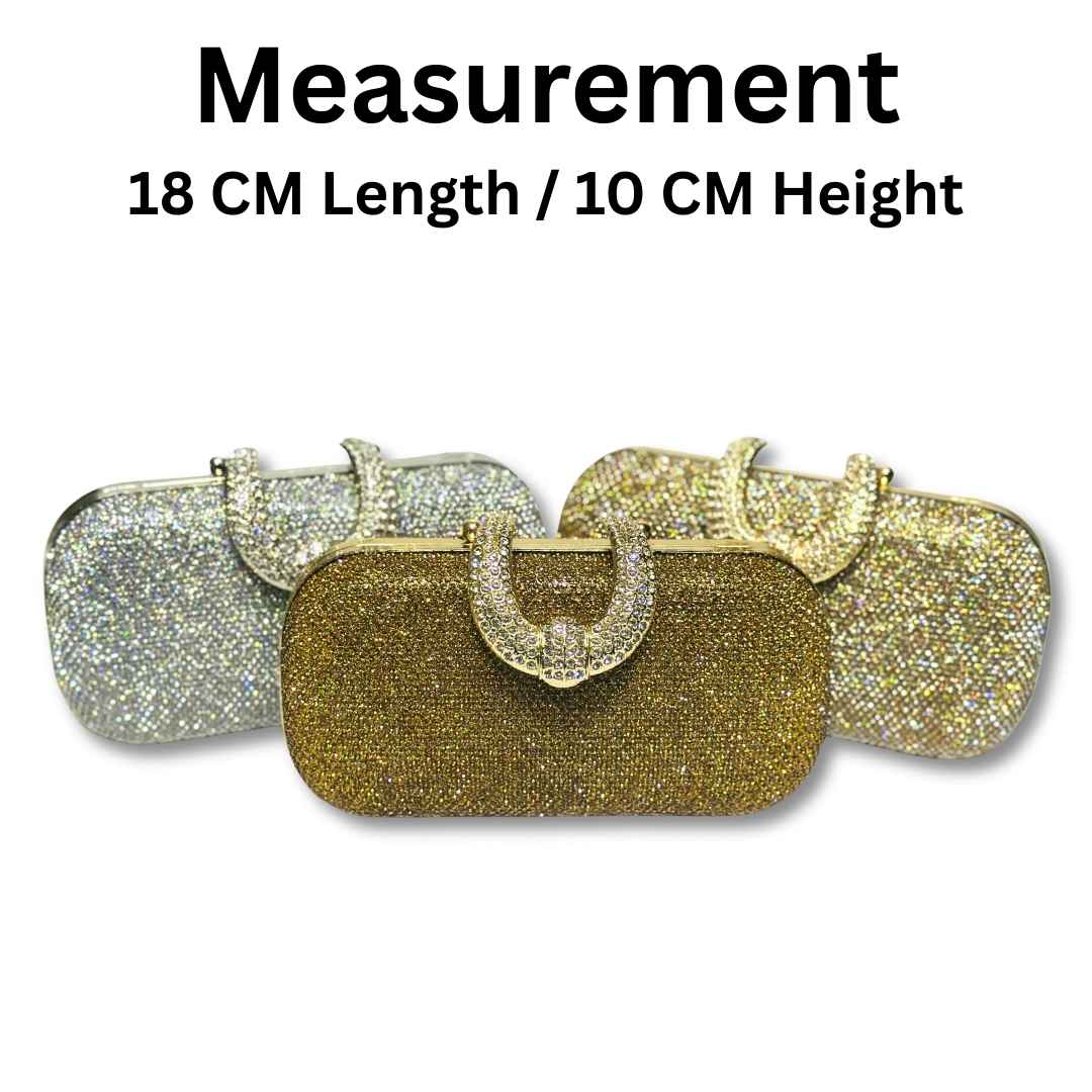 Add a touch of glamour to your outfit with the Bagsero Sparkle Stone Clutch. This exquisite metal clutch is adorned with dazzling stones on both sides, making it the perfect accessory for special occasions. Designed for versatility, it comes with both a chain strap and a sturdy handle, allowing you to carry it effortlessly. Whether you're attending a wedding, a formal dinner, or a festive celebration, this clutch is sure to elevate your style.