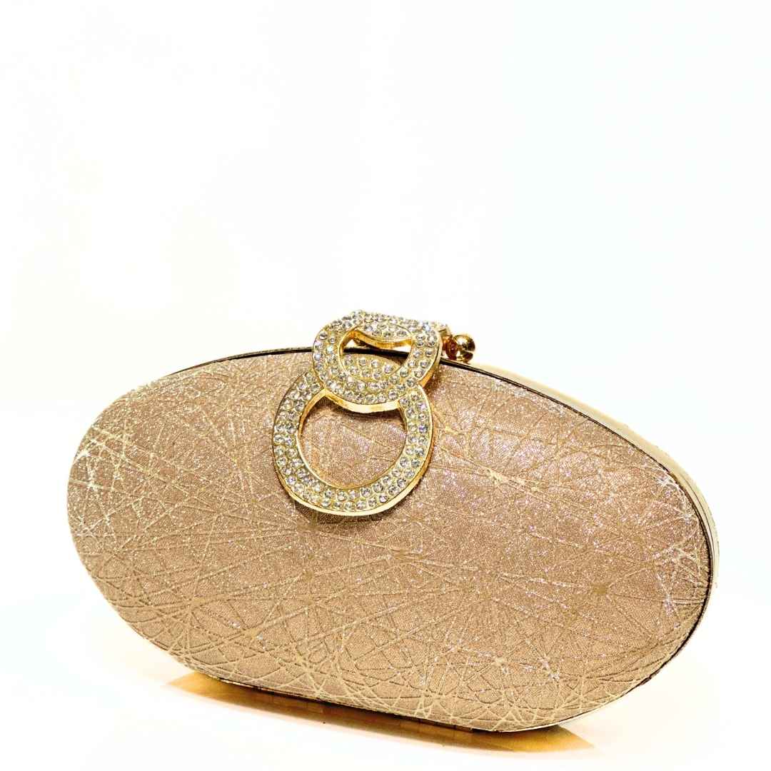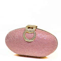 Make a statement with this sophisticated oval clutch. Its shimmering surface blends gold, silver, and soft pink tones for a chic, versatile style. The dazzling double-ring clasp, encrusted with sparkling stones, adds a luxurious touch—perfect for parties, weddings, and evening events.