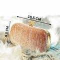 Equipped with a sturdy top handle and a detachable metal chain, it offers versatile styling — carry it as a hand-held clutch or wear it comfortably as a shoulder bag. The structured hard-case body ensures durability, while the secure closure keeps your essentials safe during formal events and celebrations.